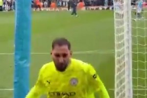 如释重负!终场哨响后,多纳鲁马跳入人群与球迷一起庆祝!